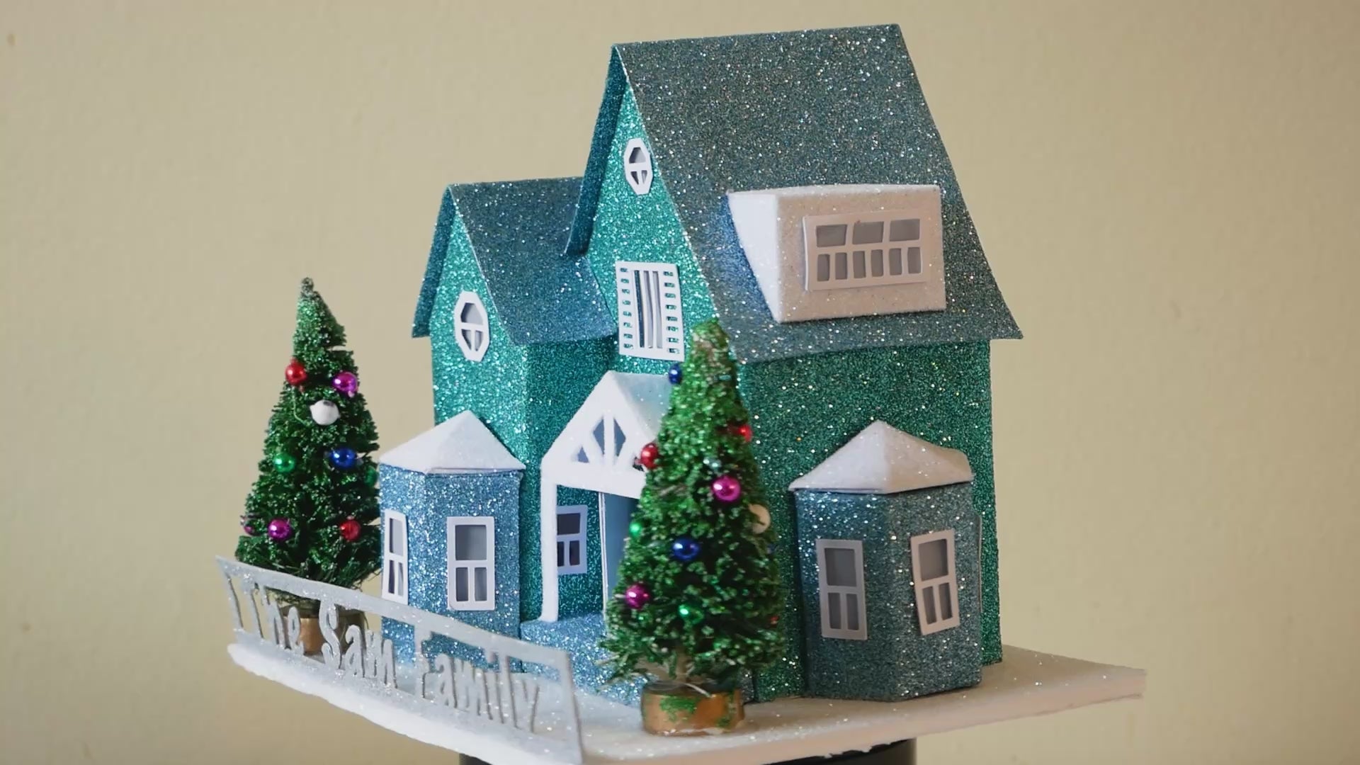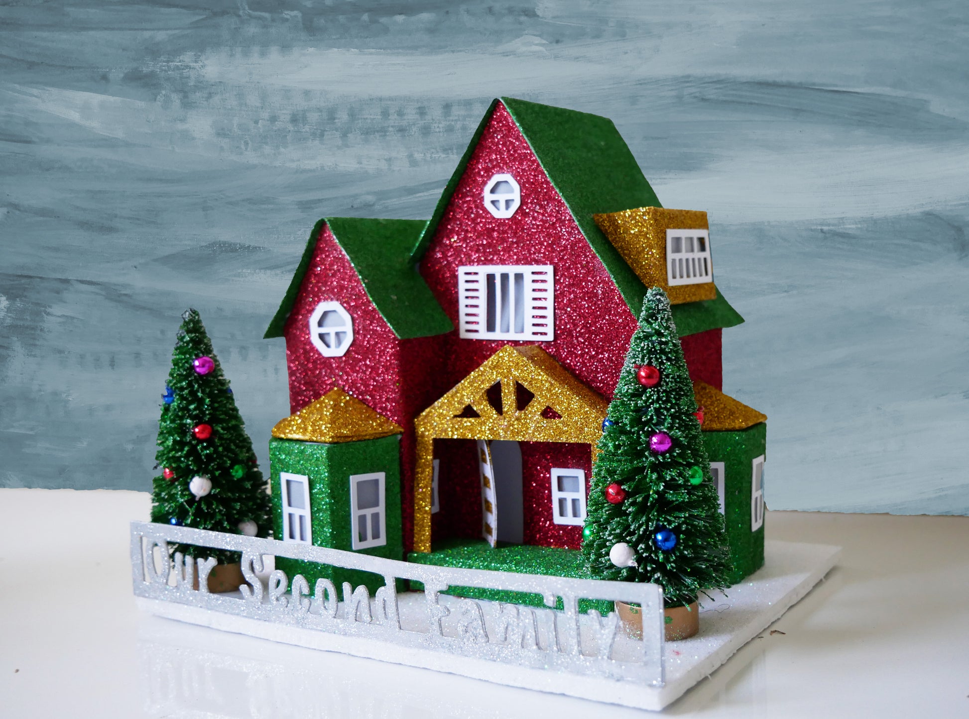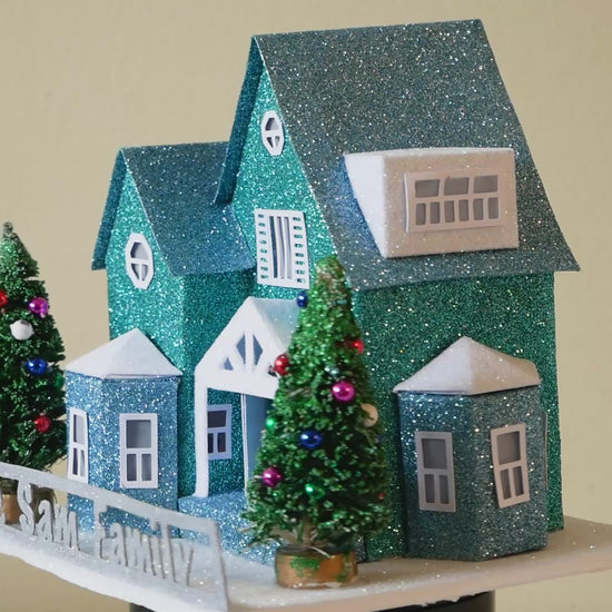 The pieces are handcrafted and heavily glittered before assembly and the windows are carefully placed to give a detailed finish look to the house.